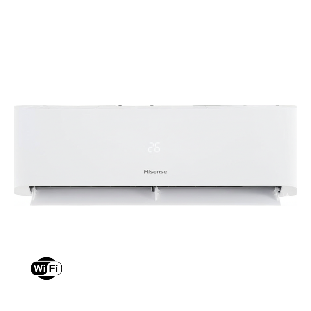 Aire acondicionado Hisense 18,000 BTU Inverter con WiFi, recomendado para áreas de 28 a 35 m². Enfriamiento potente y eficiente con control inteligente desde tu smartphone para mayor comodidad.