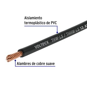 Cable THHW 12 AWG CCA Negro, VOLTECK Por Metro