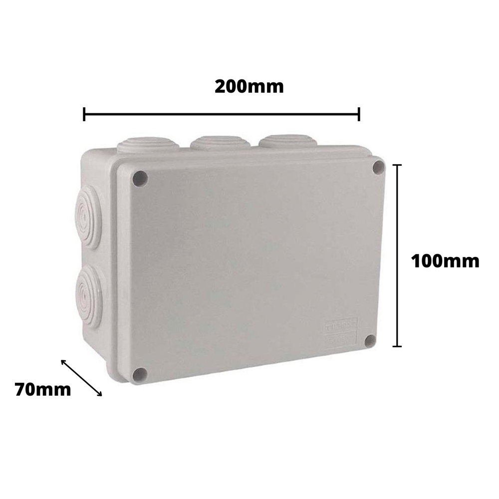 Caja de registro 4×8 pulgadas (200*100*70) con certificación IP65, ideal para instalación de cámaras de seguridad. Brinda mayor espacio para conexiones y protege contra polvo y humedad.